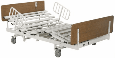 The newest of the 3 motor fully electric hi low hospital beds with optional half and full rails. Available in Twin, Full, Queen and Dual King Sizes. | The Supernal 3 is a 3 motor hospital bed that has a very low position. Available Twin and Queensize. | 5-Motor Hospital Bed. The Tuffcare Century Hospital Bed also alows for Trendellenburg and reverse Trendellenberg. Optional Side Rails. Available 36" x 80" and 42" x 80". |